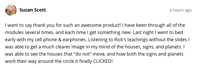 Get a kick-start guide to understanding the energies expressed in the chart, what the best practices and ethics are and receive an Astrological Foundation that you can build on for years in any of Astrological practice or study.