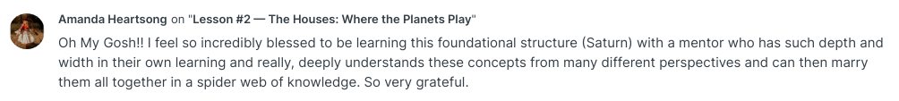The Planets “hum” with the aspects they create to one another. You’ll learn about the many different types of aspects, their orbs, and their frequency they each cary (and why!).